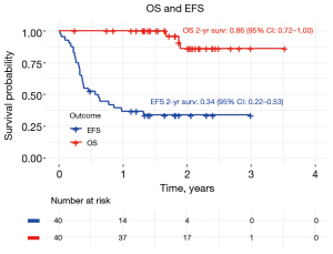 | Our cohort | Total =40 | 17 (42.5) | 11 (27.5) | 28 (70.0) | 2-year EFS 33.7% | 5.8×106 cells/kg |